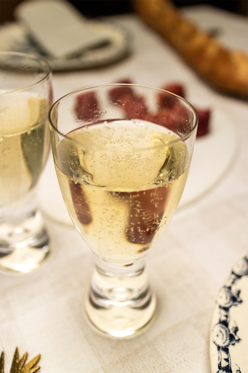 このあと、トリュフ入りブリーチーズとバゲットを出す。ブリーチーズは直前まで冷蔵庫から出すべきではなかった、スプーンですくわないといけないレベルで液状化して、全く絵にならないので写真なし。